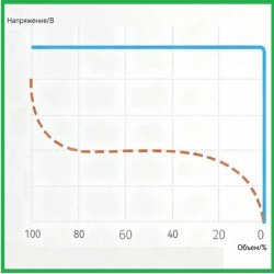 • Буквально через пару лет было придумано довольно простое решение (синий график на картинке*** ниже) — информационная («предсмертная») ступенька, снижение напряжения в конце разряда до 1.1-1.15В. Другими словами, разрядная кривая представляет собой 2 ступеньки по напряжению: первая (основная) + вторая (информационная).