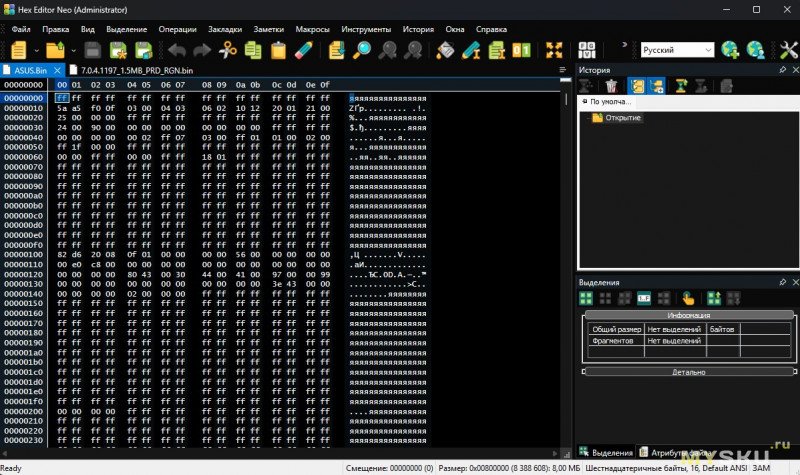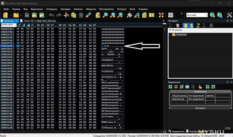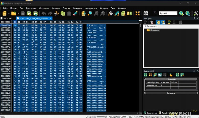 Сохраняем отредактированный дамп под новым названием (я назвал asusclear.bin).