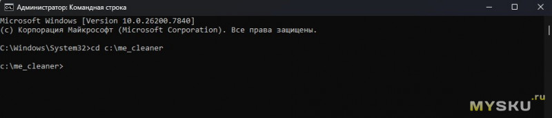 Через командную строку (в поиске пуска пишем CMD, запускать от имени администратора) переходим в папку me_cleaner командой cd c:\me_cleaner