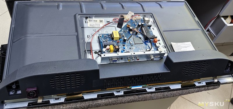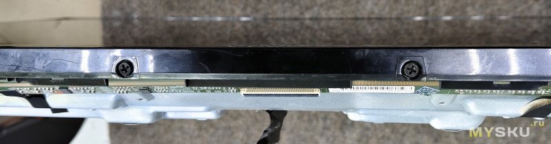 Снимаем t-con плату и отключаем шлейф на матрицу. Основную плату можно не трогать — она не мешает.