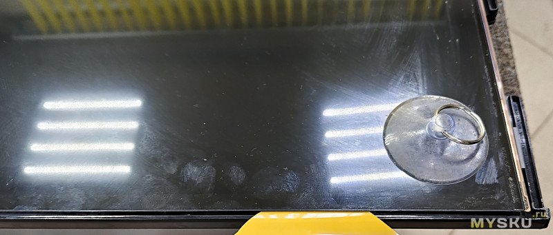 Собираем в обратном порядке. При установке рамки с матрицей не давите на стекло — только на пластик! Итог — картинка без пятен и засветов.