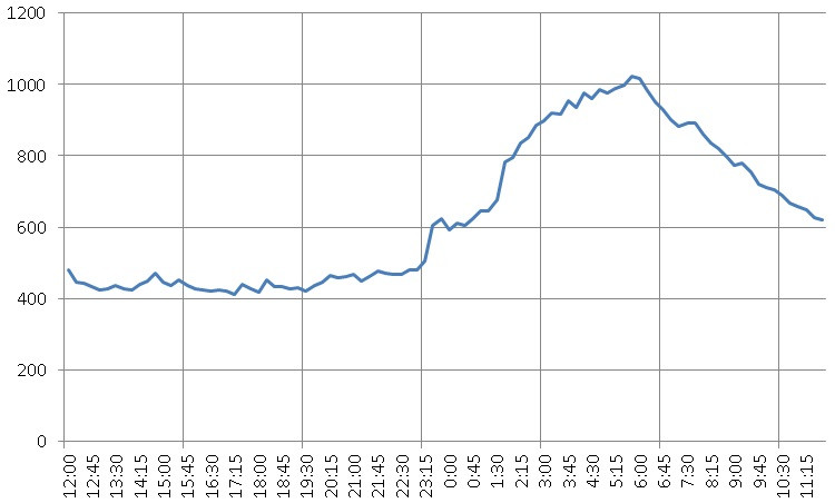 Поскольку прибор не имеет логгера, поставил его под видеокамеру на сутки.
