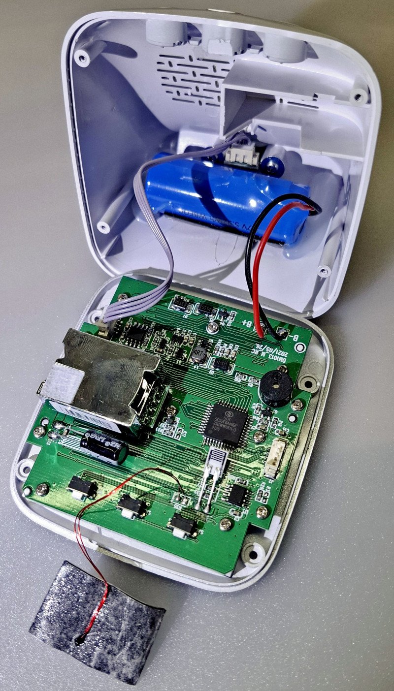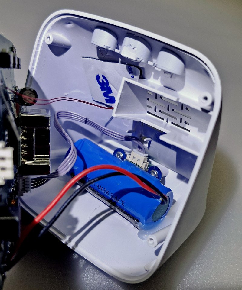 Аккум тоже висит на липучке, дополнительно закреплён термоклеем, заменить при необходимости не проблема.