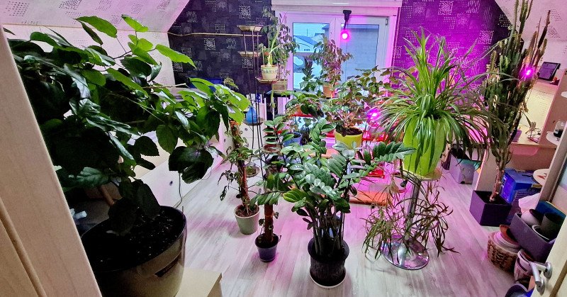 А вот самая напряжённая ситуация с углекислым газом у нас должна быть в одной из бывших детских комнат, где супруга сперва создала настоящую оранжерею, а потом и спать решила среди этой зелени: