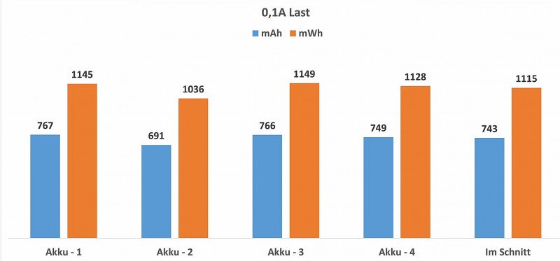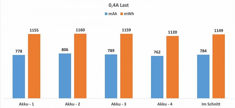 «Обычная» емкость (мАч) и энергоемкость (мВтч) получилось несколько меньше измеренных мною.