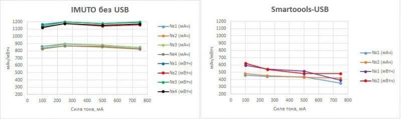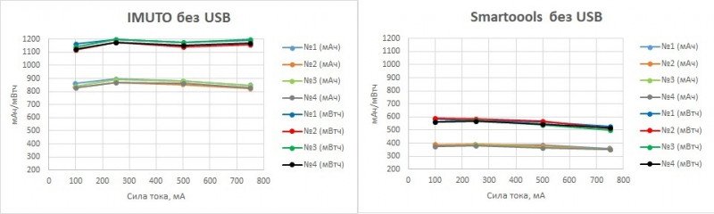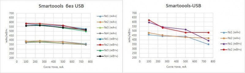 На остальных токах. Справа, для сравнения, результаты, полученные для USB ААА Smartoools.