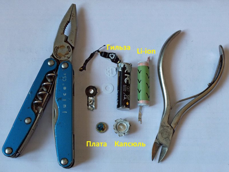 «Капсюль» присобачен к «гильзе» почти намертво. Но длительное раскачивание пассатижами все-таки приводит к отделению одного от другого.