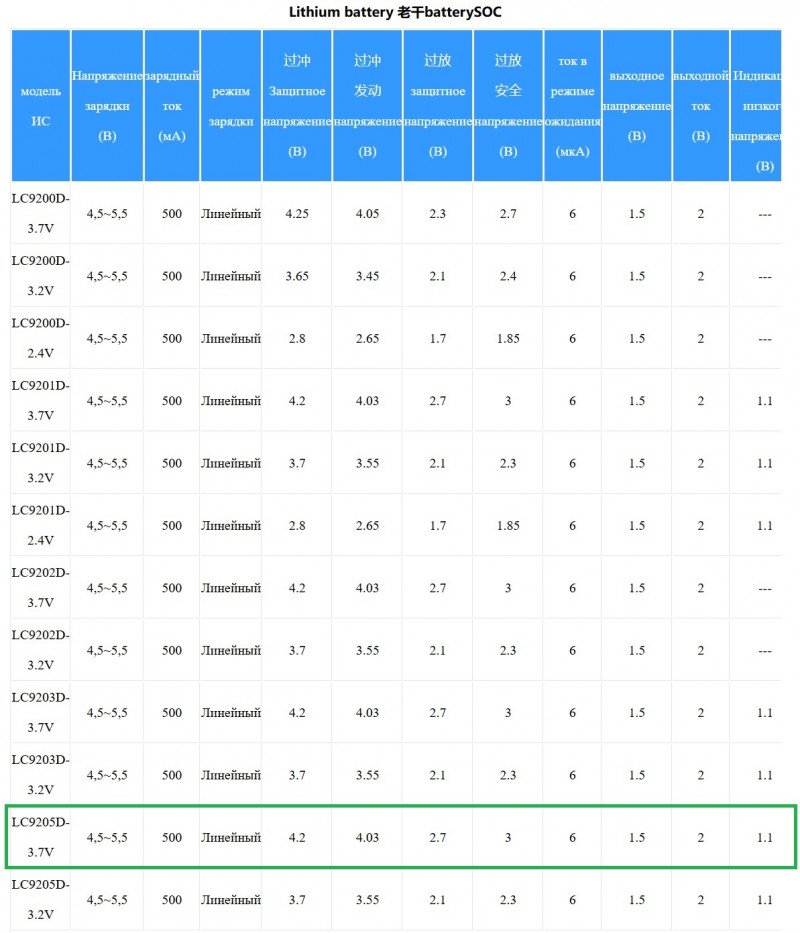 И опять чип от LiChi серии LC920х. На родном сайте LC9205D присутствует в сводной таблице характеристик