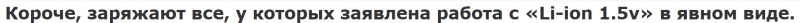 Li-ion аккумуляторы с 1.5В на выходе. Теперь без USB-порта
