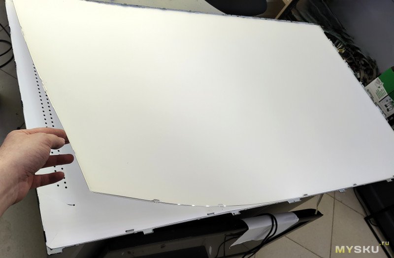 Под матрицей в корпусе расположены рассеивающие свет пластик и пленки — снимаем их все разом не разделяя