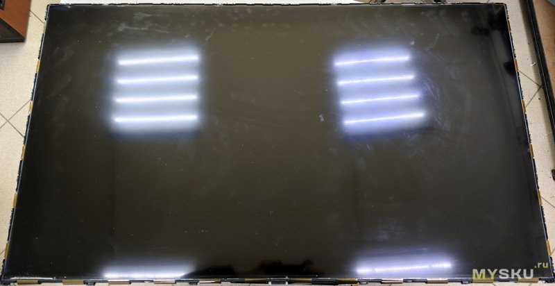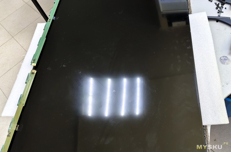 Заметил повреждения на отражателе, спросил владельца — был ли ремонт этого тв? Оказалось его уже делали по гарантии (3 года), выходит после замены подсветки ориентировочно отработал 2-3 года.