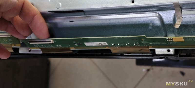 Обратите внимание — по бокам имеются «уши» (COF/TAB драйверы) — не повредите их. При снятии рамки можно будет понять где защелка, а где пустота (а в неё шлейф). В общем — тут аккуратно