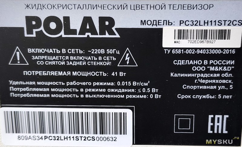 Срок службы, указанный на наклейке тв — 5 лет, но дата производства не указана. Скорее всего 2019-2020 год.