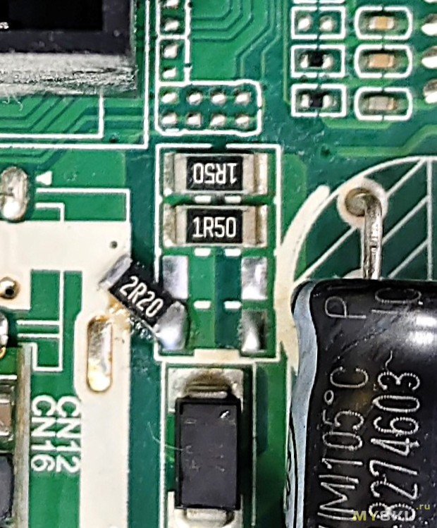Я убрал резистор на 2.2 ома, ток упал на 25%