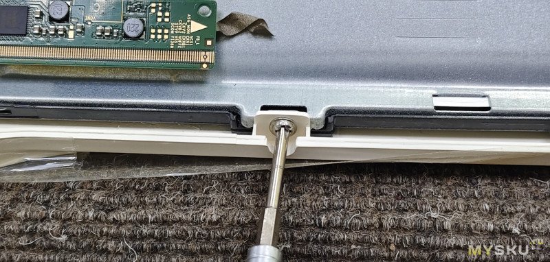 Снизу тв откручиваем винты, поддерживающие внешную рамку