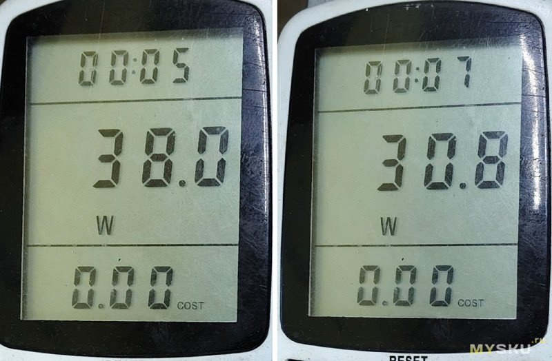 Это видно по потреблению — было 38 ватт, стало 31 ватт.