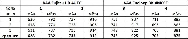 Получилось вот такое: 555мАч/651мВтч. Это 74%/70% от значений, представленных в табличке.