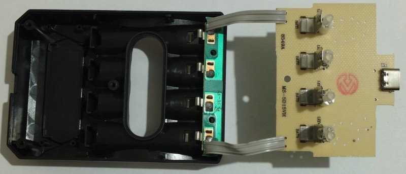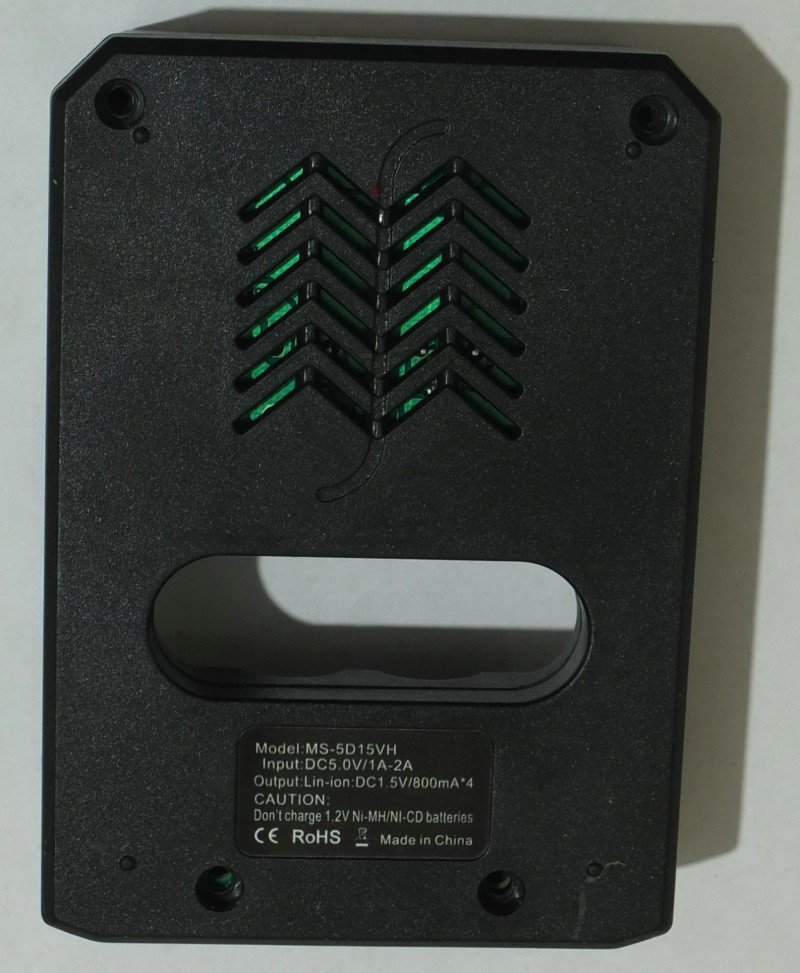 На самом деле, эта штуковина не является «зарядным устройством» в общепринятом понимании. Это всего лишь пластиковая коробка с 4 слотами, в которые можно вставить АА или ААА, что бы подать на Li-ion-1.5В-без-USB требуемые 5В. Все остальное сделают «мозги», спрятанные внутри Li-ion-1.5В. И зарядят по единственно правильному алгоритму CC/CV, и сделают отсечку по минимальному току.