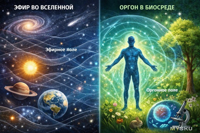 На этом можно было бы и закончить историю. Но в завершение рассказа я проведу некоторую параллель между теорией эфира и оргона. Одно лишь исключение — оргон «появился» на стыке науки и эзотерики. Общее то, что эфир, и оргон описывались как всеобъемлющая «среда», заполняющая пространство и пронизывающая материю, а не как локальные явления. Эфир пытался объяснить распространение света и гравитацию, а оргон — жизненную энергию, здоровье и психологическое состояние.