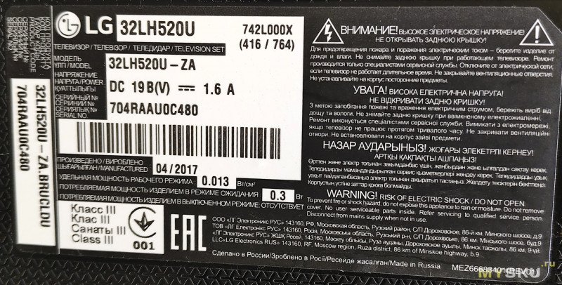 Телевизор LG 32LH520U - выгорание LED драйвера, замена подсветки