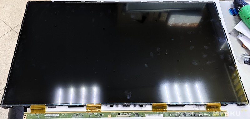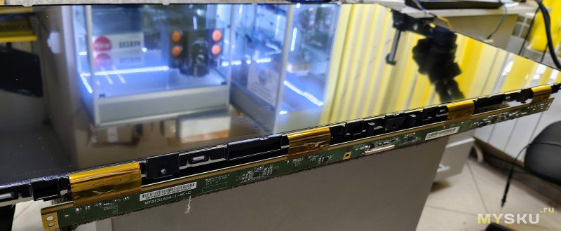 Перед снятием стекла необходимо снизу извлечь из креплений плату матрицы на шлейфах