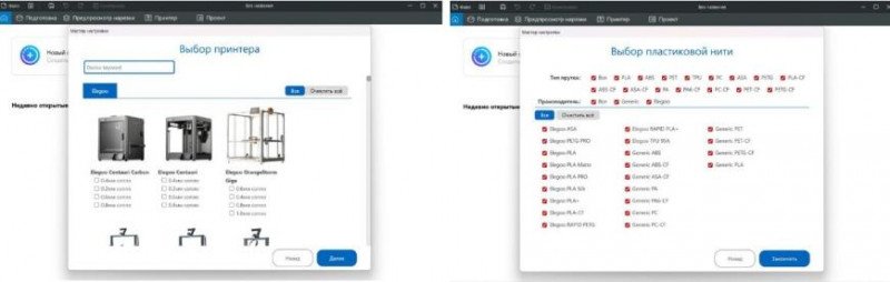 Производитель рекомендует использовать ElegooSlicer. Для этого слайсера (а это OrcaSlicer) предусмотрены профили, позволяющие работать с данной моделью принтера без дополнительных настроек. Я установил ElegooSlicer, выбрал в меню профиль машины «Elegoo СС2», добавил нужные типы филаментов. Этот же тип филамента указываем при загрузке в Canvas станцию. Есть возможность удаленного подключения через WiFi (в домашней сети или через облако).