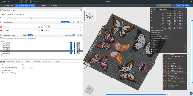— Ну и время печати увеличилось по сравнению с классической однотонной печатью. Я бы не сказал, что на прочистку/смену прутка уходит много времени, но если эта процедура происходит на каждом слое, то даже простая печать может сильно затянуться.
