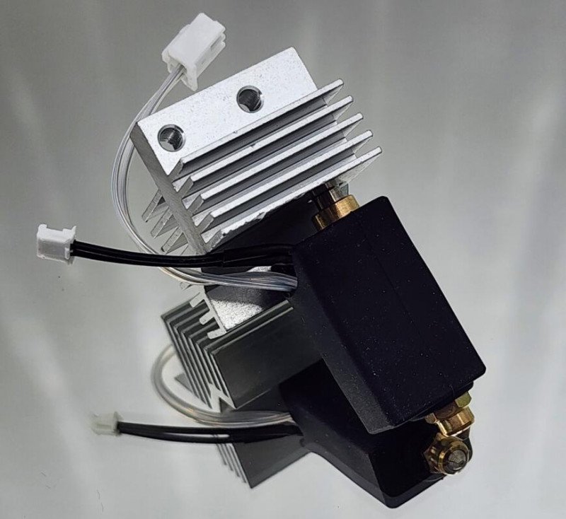 Есть в продаже закаленные и биметаллические сопла. Заменить сопло — одна минута (2 коннектора и 2 винта). Сборка хотэнда для замены стоит рублей 500, сопло отдельно 100-300 рублей.