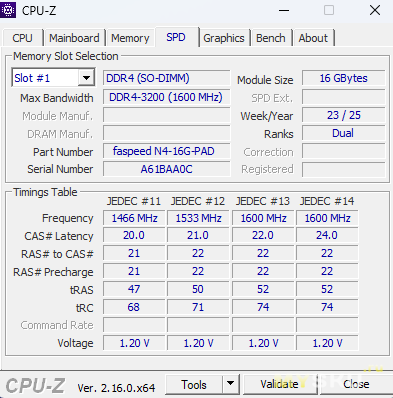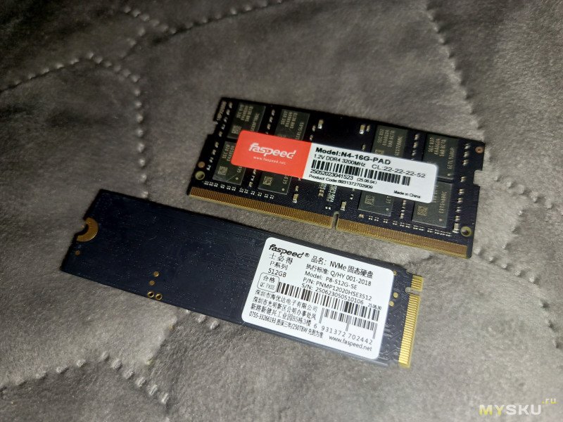 — память DDR4 3200 МГц на 16 ГБ (один модуль с маркировкой Faspeed N4-16G-PAD),