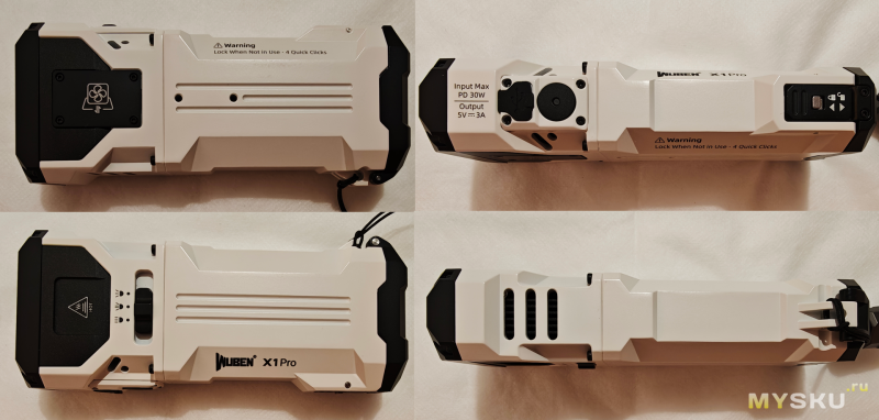 Видимо по этой причине на корпусе предусмотрительно выгравирована просьба включать блокировку четырёхкратным нажатием при неиспользовании фонаря.