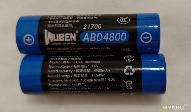 В комплекте были 2 аккумулятора 21700 на 4800 мА·ч брендированные Wuben.