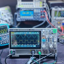 Главная особенность этих осциллографов — 12-битный АЦП. Для бюджетных приборов это довольно заметное отличие, поскольку большинство моделей в этом классе используют 8-битную оцифровку. В теории это означает значительно более высокую детализацию сигнала и более чистую картинку на экране, мне это важно при работе с небольшими амплитудами и шумными цепями при тестировании планарных микрофонов, которые я использую при ремонте блютуз гарнитур.