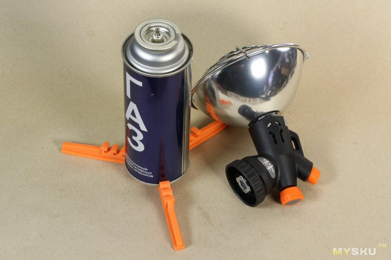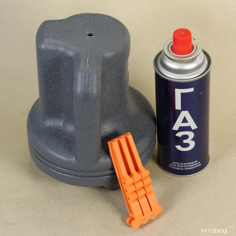Надевается прибор на баллончик легко и надёжно, газ при этом ни секунды не травит. Вместе с баллончиком обогреватель становится единым целым, ничего не люфтит.
