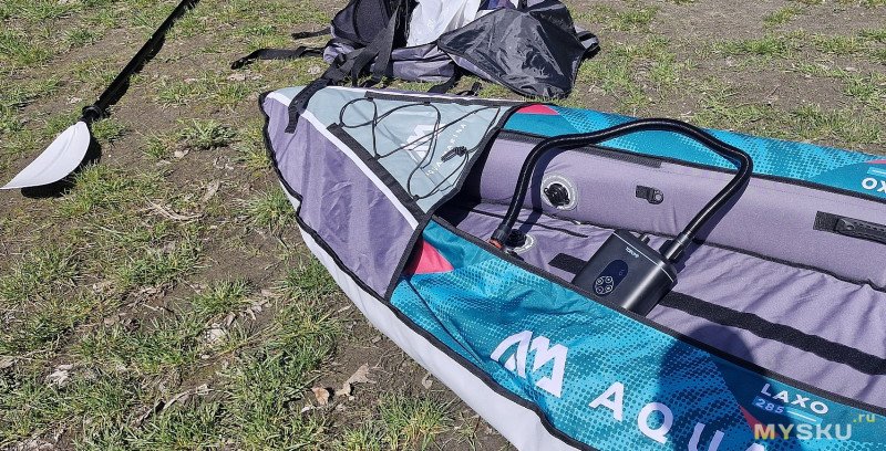AQUA MARINA Laxo-285 приятная прогулочная лодочка, начальный уровень для сплавов по спокойным рекам. Отмечу продуманную компоновку в удобный рюкзак и невысокий уровень дополнительных опций (тяжелое весло, лягушка, манометр, ремкомплект). Качество материалов и фурнитуры отличное.