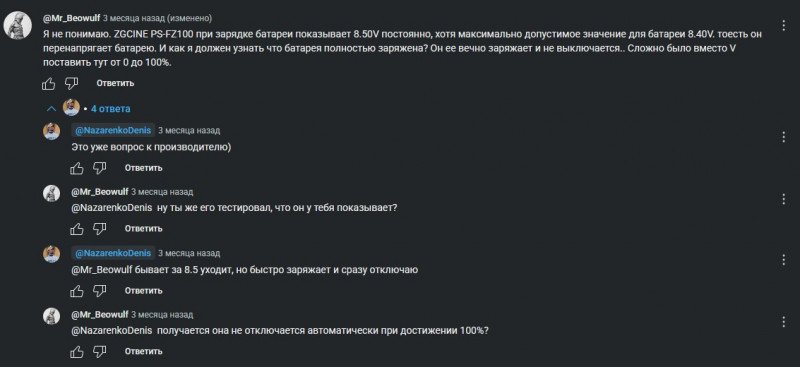И вот я начал тесты и меня ждал печальный сюрприз в виде 8,55в на батарейке… Я ненароком подумал что мои знания устарели и в NP-FZ100 стоит что то аля lihv а не li-ion, но нет, 8,4в это максимум что для оригинальных NP-FZ100 что для их аналогов, и эта зарядка просто перезаряжает их выше безопасного диапазона!