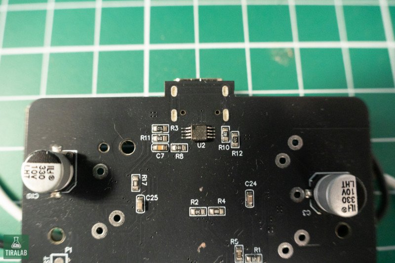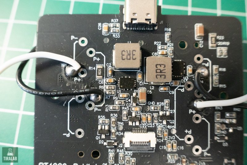 На дне расположена плата с микросхемами в количестве четырех штук, маркировки всех чипов стерты, но не сложно понять что восьминогая микросхема у юсб порта скорее всего PD триггер запрашивающий напряжение 9V с блока питания, большая микруха с той же стороны это разновидность микроконтроллера который ведет замеры напряжения по каналам батареек, и выводит его на экран, а 2 идентичных микросхемы с другой стороны это шим контроллеры преобразователей питания которые выступают в качестве зарядок.
