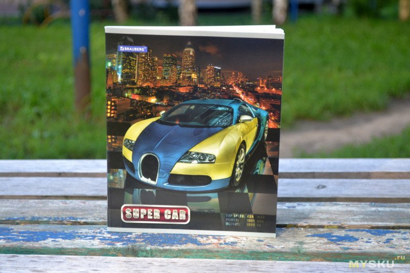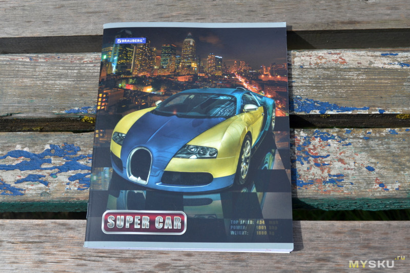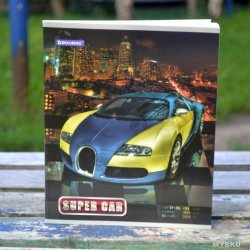 В наборе АВТО пять тетрадей с изображениями разных автомобилей на обложках. Мне досталась самая необычная — она похожа на Bugatti Chiron Sport. Важно отметить, что на обложках нет логотипов автокомпаний.