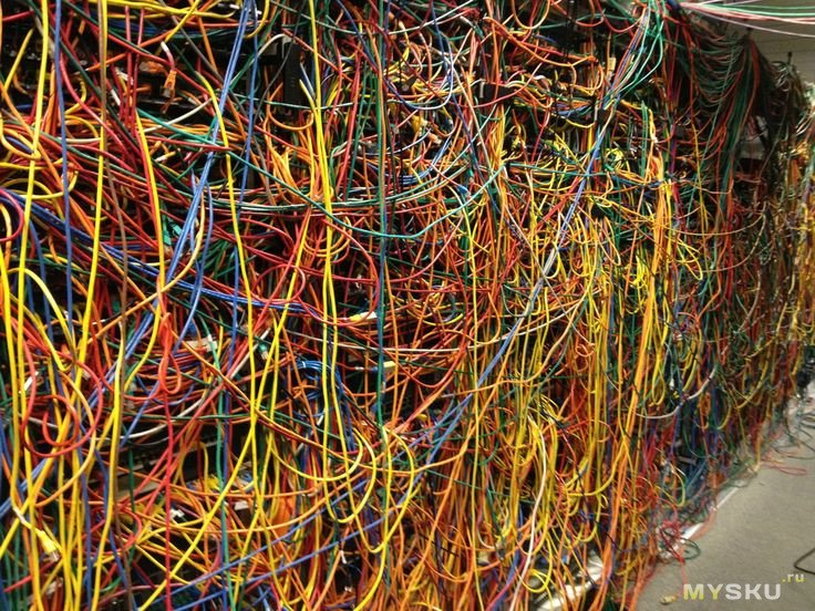 Электрика конечно же по количеству проводов меньше. Но рукожопам везде простор. Когда работал в дата центре, то айтишники в серверной подключали сервера по принципу беру удлинитель и включаю где вижу. Пока автомат после ИБП не перегрузили и вся банковская сеть ночью не рухнула. Такие же сопли из электрических проводов были под фальшполом разбросаны. Фото нет.