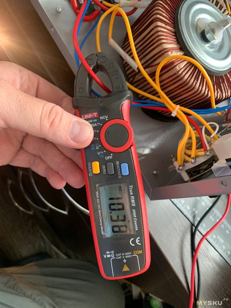 Ток установился на отметке 9.95А на «первой» обмотке: