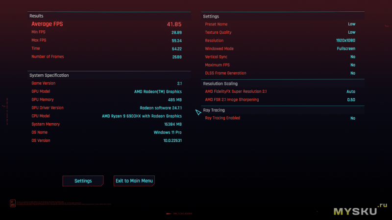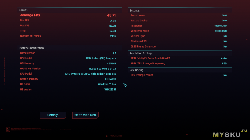 МиниПК работает на 8/16-ядерном процессоре AMD Ryzen 7 8745HS, вышедшем в июле 2024 года, 4нм техпроцесс, указанный в характеристиках TDP 35-45W. Базовая частота по спецификации 3.8ГГц, а турбочастота 4.9ГГц. Этот чип имеет встроенную графику Radeon 780M (RDNA3, 12 CU, до 2600 МГц), а размер кэша 3-го уровня 16 МБ.