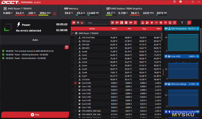 Запускайте OCCT в режиме POWER На час, у этого мини пк плавиться начнет все. Aida64 Греет дай боже на половину от реального теплопакета.