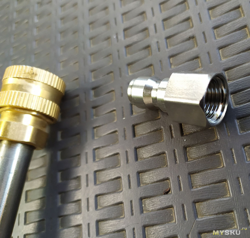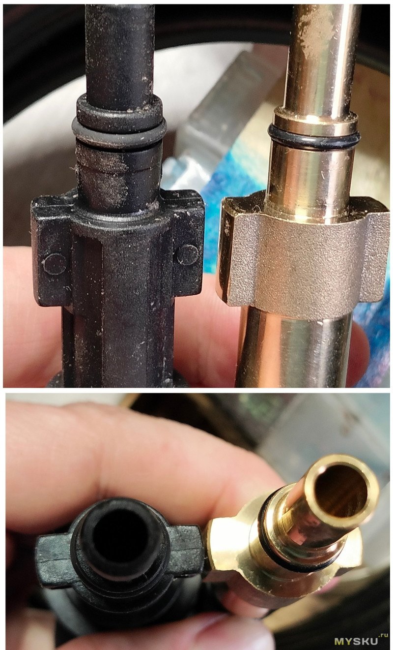 С дешевой китайской мойкой не стыкуется (по фото сразу не совсем смог понять, были разные переходники на фото), поэтому после получения дозаказывал переходник на быстросъем.