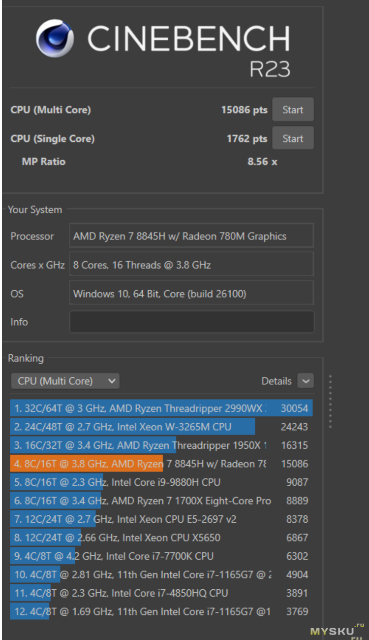 Отличие производительности процессоров AMD Ryzen 9 8945HS и 7940HS небольшое, но есть.