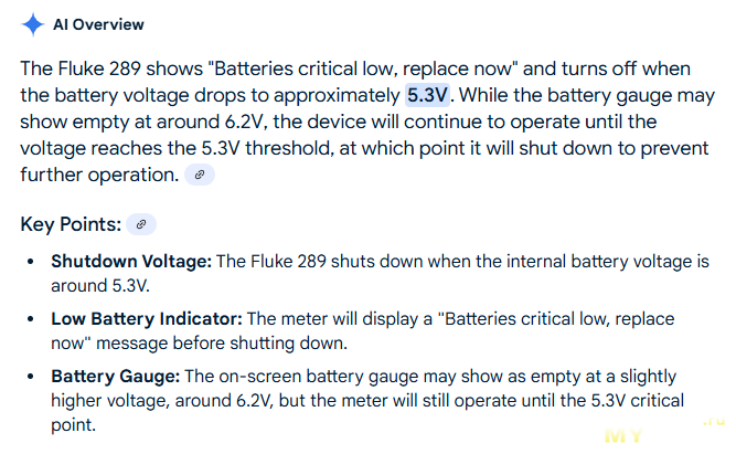 When the battery voltage drops to 5.3V, the multimeter will display a «Batteries critical low, replace now» message and shut down.