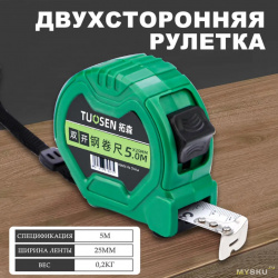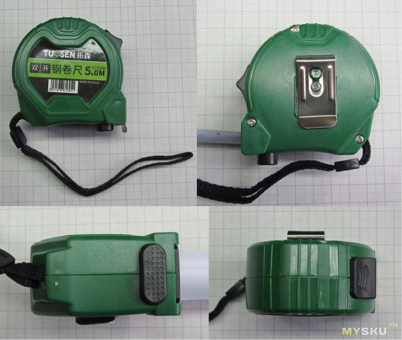 Резюмируя: обычная неплохая 5-метровая рулетка. Без автостопа, без протовоскользящих вставок, без дюймов, односторонняя… Претензий к ней нет, только к описанию продавца. Впрочем, подобные рулетки без надписи tuosen можно купить раза в два-три дешевле.