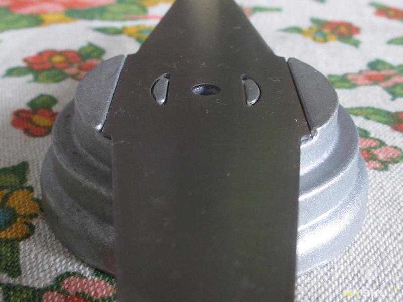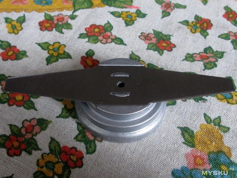 Из особенностей — нет насадки под леску, у других моделей она бывает, насколько нужна затрудняюсь сказать. Диаметр насадок 15см.