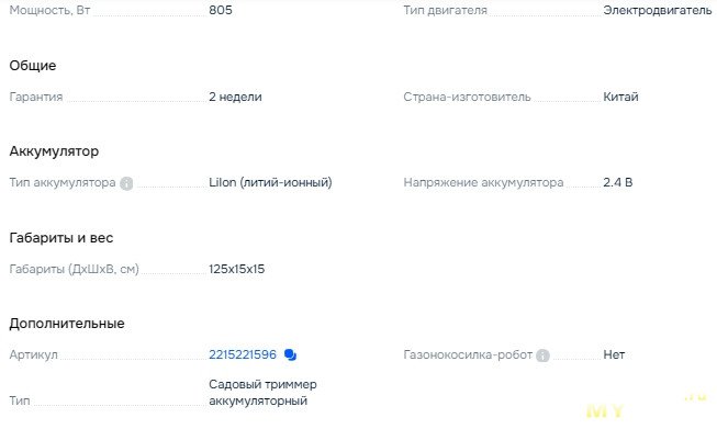 Мощность реальная где-то ватт 200-300, не больше, тяга сильная в ущерб оборотам (там редуктор стоит), из-за этого он спотыкается на густой и толстой траве, ещё если трава слишком длинная, то может намотаиться на шпиндель