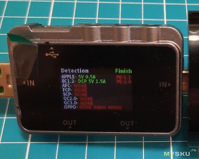 По результатам тестирования выявлена поддержка следующих протоколов быстрой зарядки: