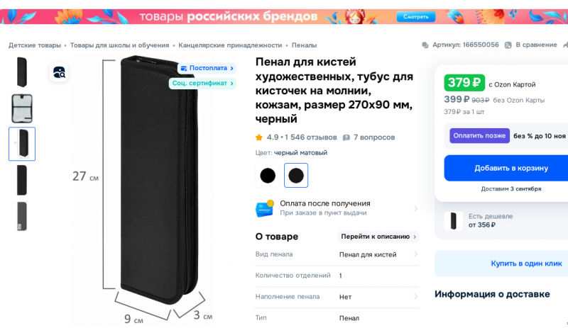 Увидел в предложения на Озоне карманный пенал для карандашей и ручек. Фото были просто прекрасные