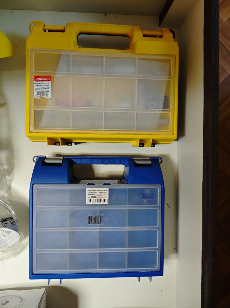 Снизу ящики не отличаются вообще, сбоку — только тем что у нового верхняя крышка желтого цвета, ну а сверху отличия конечно же хорошо видны — тут у нас большой органайзер
